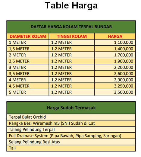 Silakan hubungi kami untuk pemesanan dan juga pemasangan kolam terpal baik itu kolam terpal bulat ataupun kolam terpal kotak.